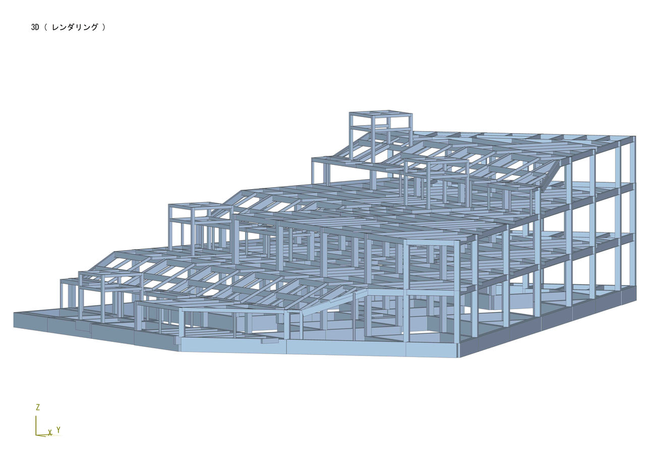 構造的な基本計画・実施設計にあたっては、建物形状・立面形状が複雑であったため、数パターンの構造フレームを検証し、また工期・コスト面及び施工性なども考慮した上で構造計画を進めた。